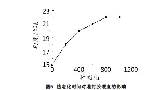 由表1可見,隨熱老化時間遞增,灌封膠并沒有出現(xiàn)與塑殼分離脫落現(xiàn)象,說明灌封膠在高溫下仍保持良好的粘接性。