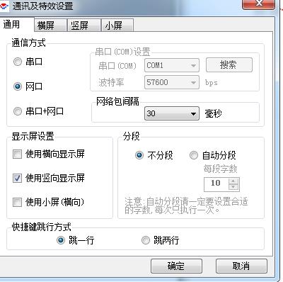 (3)回到圖3-2界面,再點較上面設置----通訊及特效設置,只勾豎屏、網口,不分段,跳一項